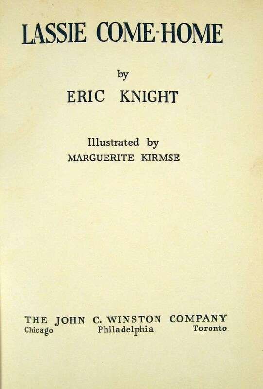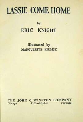Knight, Eric. Lassie Come Home. Chicago, etc.: John C. Winston, (1940). First edition. 8vo, orig. pictorial yellow-orange cloth; minor edge wear, d/j (some creasing & edge wear, price clipped). Color frontis, b/w full-page & other illus. by Marguerite Kirmse. Internally clean. Attractive copy.