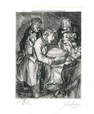 Etching. Sloan, John. Untitled [from Charles Paul de Kock's Works]. [Boston]: F. J. Quinby, 1904 5 3/4 x 4 3/4 inches (146 x 120 mm), full margins. With remarque. Signed in Pencil by Sloan. Generally clean.