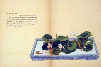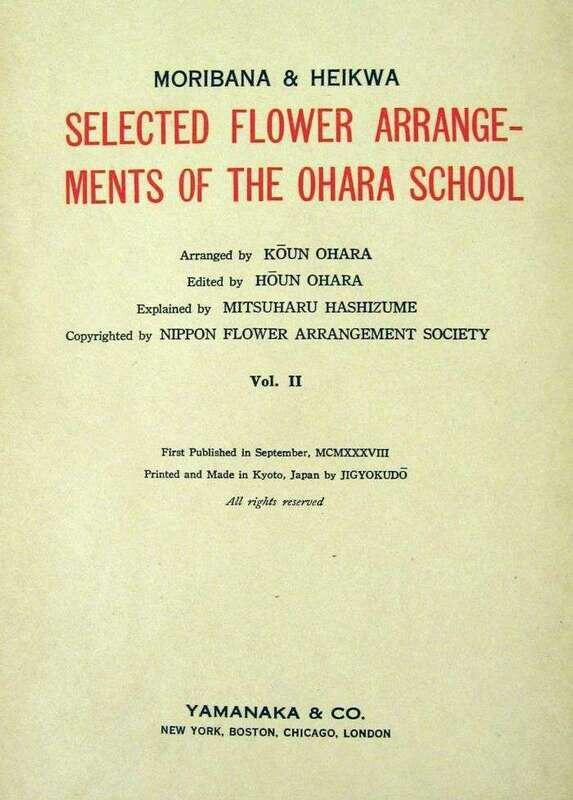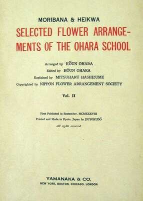 Yamanaka & Co., pub. Selected Flower Arrangements of The Okara School. New York, etc., (1936)-(1938). Vols. [I] & II. 3rd ptg. of vol. I, 1st ptg. of vol. II. Sm. 4to, orig. green silk covered bds., paper labels, orig. green bds. slipcases; some wear & discoloration to bds. 85 color woodblock plates in accordion format.