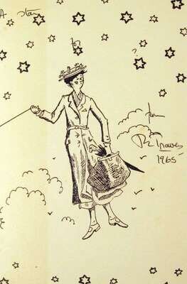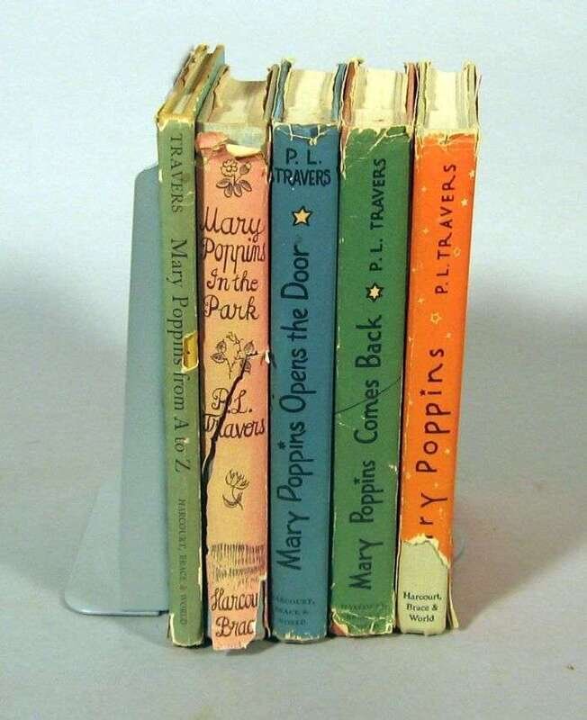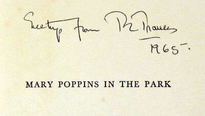 Travers, P.L.: Mary Poppins. New York: Harcourt, Brace & World, (1962). 12mo, orig. cloth; light wear, d/j (edge wear, foot of spine panel torn away - bottom corner of inside flap torn away). Frontis., text illus., pictorial endpapers. Inscribed, dated, "1965," & signed by P.L. Travers on front free endpaper recto. * Mary Poppins Comes Back. New York: Harcourt, Brace & World, (1963). 12mo, orig. cloth; light wear, d/j (some wear to edges & joints). Frontis., text illus., pictorial endpapers. Inscribed, dated, "1965," & signed by P.L. Travers on front free endpaper recto. * Mary Poppins Opens The Door. New York: Harcourt, Brace & World, (1965). 12mo, orig. cloth; minor wear, d/j (light edge wear). Frontis., text illus., pictorial endpapers. Inscribed, dated, "1965," & signed by P.L. Travers on front free endpaper recto. * Mary Poppins in The Park. New York: Harcourt, Brace & World, (1964). 12mo, orig. cloth; scuffed, d/j (some wear & chipping). Frontis., text illus., pictorial endpapers. Inscribed, dated, "1965," & signed by P.L. Travers on 1/2 title. * Mary Poppins from A-Z. New York: Harcourt, Brace & World, (1962). Sq. 8vo, orig. cloth; light wear, d/j (occasional chipping, some dust soiling). Full-page illus., pictorial endpapers. Inscribed, dated, "1965," & signed by P.L. Travers on front free endpaper recto.