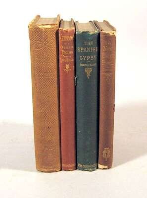 American & British 19th-Century Literature: Longfellow, Henry Wadsworth. The New-England Tragedies. Boston: Ticknor and Fields, 1868. 1st Am. trade ed., early ptg. 12mo, orig. purple-brown cloth, gilt; scuffed, spine ends frayed & chipped, occasionally blistered. Internally toned. BAL 12150, bdg. state B. * _ _. Keramos. Boston: Houghton, Osgood, 1876. 1st trade ed. 12mo, orig. terra-cotta cloth, gilt; occasionally scuffed, spine ends slightly frayed. BAL 12199, bdg. state 1. * Holmes, Oliver Wendell. Soundings from The Atlantic. Boston: Ticknor and Fields, 1864. 1st ed. 12mo, orig. purple cloth, spine gilt; spine faded to brown, some edge wear. BAL 8829. * Eliot, George. The Spanish Gypsy. Boston: Ticknor and Fields, 1868. 1st Am. ed. 12mo, orig. green cloth, gilt; occasional edge wear, head of spine slightly frayed.