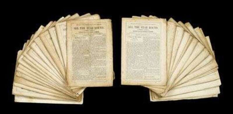 [Collins, Wilkie.] The Woman In White. In All The Year Round. A Weekly Journal Conducted by Charles Dickens. [London]: November 26, 1859 - August 25, 1860, nos. 31-70. First appearance. 8vo, orig. self wrappers; scattered light foxing, occasionally light edge wear, 1 issue with inkmarks on self wrapper. Loose as issued, generally crisp and attractive. Dicken's A Tale of Two Cities was the first novel to be serialized in All The Year Round, at its conclusion Dickens agreed next to carry The Woman In White, the November 26, 1859 (no. 31) carries both the last installment of A Tale of Two Cities and the first installment of The Women In White. The novel was simultaneously serialized in Harper's Weekly in America. The first book form editions were issued in New York & London in August, 1860.