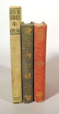Kipling, Rudyard [First American Editions]: The Jungle Book. New York: Century, 1894. 8vo, orig. gilt-pictorial green cloth, t.e.g, other edges untrimmed; light edge wear, slightly cocked. Frontis., full-page illus. Internally clean. Livingston 105. * The Second Jungle Book. New York: Century, 1895. 8vo, orig. gilt-lettered blind stamped salmon cloth, t.e.g., other edges untrimmed; slightly scuffed, corners slightly bumped, a little dusty. Illus. Internally generally clean. Livingston 116. * Just So Stories. New York: Doubleday Page, 1902. 4to, orig. pictorial green cloth; light edge wear, slightly scuffed, small area of front cover moderately scuffed. Full-page illus. by the author. Internally generally clean. Livingston 268. All complete with 1/2 titles.