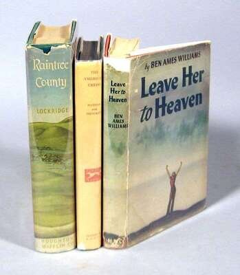Modern Belles Letters & Fiction: Nathan, Jean; Mencken, H.L. The American Credo. New York: Knopf, 1920. 1st ed. 12mo, orig. gilt-lettered black cloth; minor wear, d/j (slightly dusty, minor edge wear, some discoloration to endpapers). Presentation copy, inscribed to the California writer Herman Scheffauer, dated, "1920," & signed by H.L. Mencken on front free endpaper recto. * Williams, Ben Ames. Leave Her to Heaven. Boston: Houghton Mifflin, 1944. 1st ed., 12mo, orig. cloth; light edge wear, d/j (creased, head of spine chipped away). * Lockridge, Ross, Jr. Raintree County. Boston: Houghton Mifflin, 1948. 1st ed. 8vo, orig. cloth; joints scuffed, other light to moderate wear, d/j (creased & occasionally chipped - negligible loss to lettering or design elements). Presentation copy, inscribed & signed by Lockridge on 1/2 title. Author's first & only book.