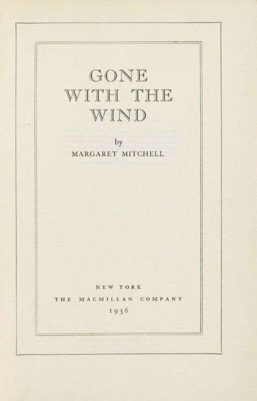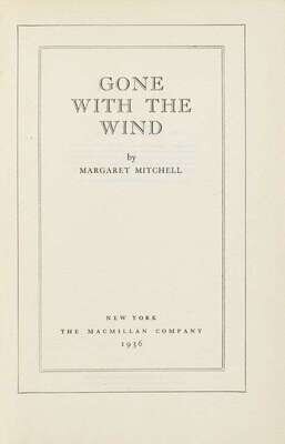 Mitchell, Margaret. Gone With The Wind. New York: Macmillan, 1936. First edition, first printing. 8vo, orig. green cloth; very minor edge wear, d/j (a few small close tears along edges, minor wear at extremities of front flap joint). Contemp. book sellers ticket on back paste-down. First state of d/j. Unusually bright, tight copy. NF-/NF.