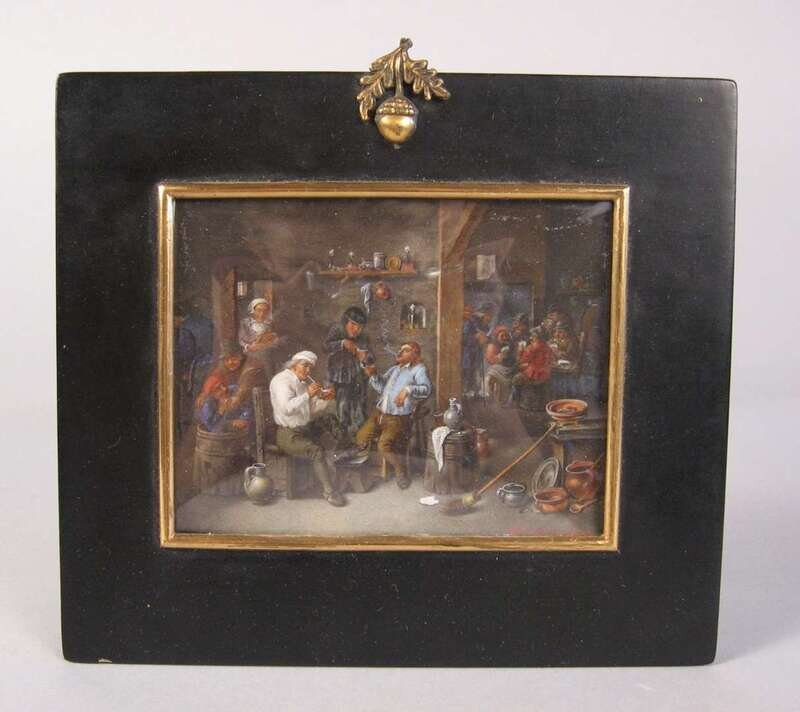 Dutch school, (After David Teniers, the Younger) miniature painting the smokers