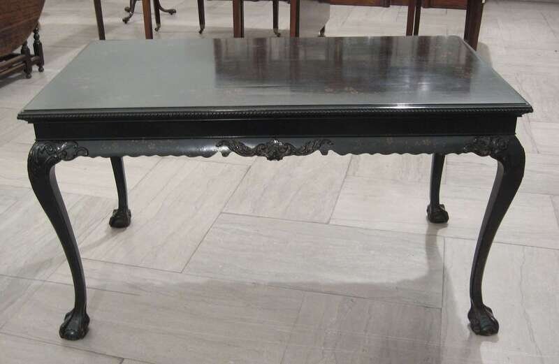 The rectangular gadrooned edged top over a shaped apron, the acanthus carved center and shoulders on cabriole legs ending on ball and claw feet.