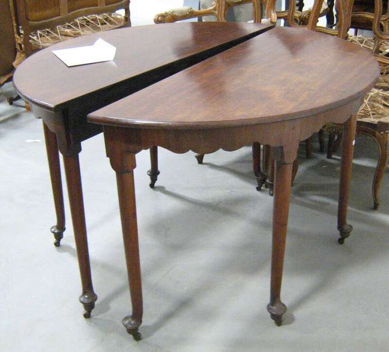 Each with a D-shaped top over a scalloped apron raised on cabriole legs ending in slipper feet and casters. (2).
