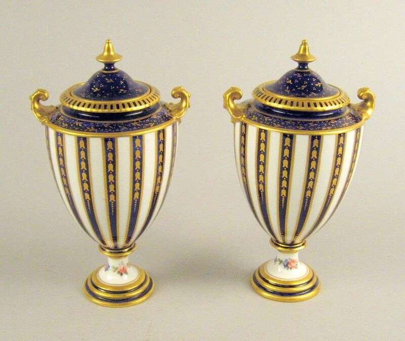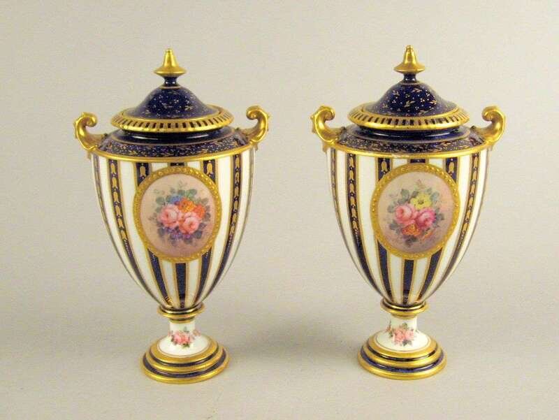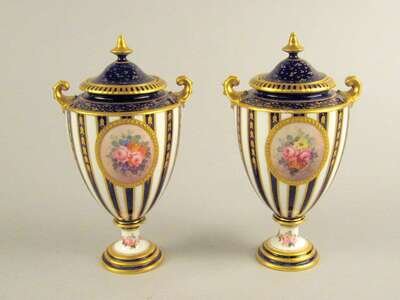 Pair of Royal Crown Derby porcelain urns early 20th century