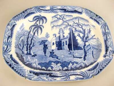 Davenport blue printed 'Chinese Ruins' pattern platter early 19th century
