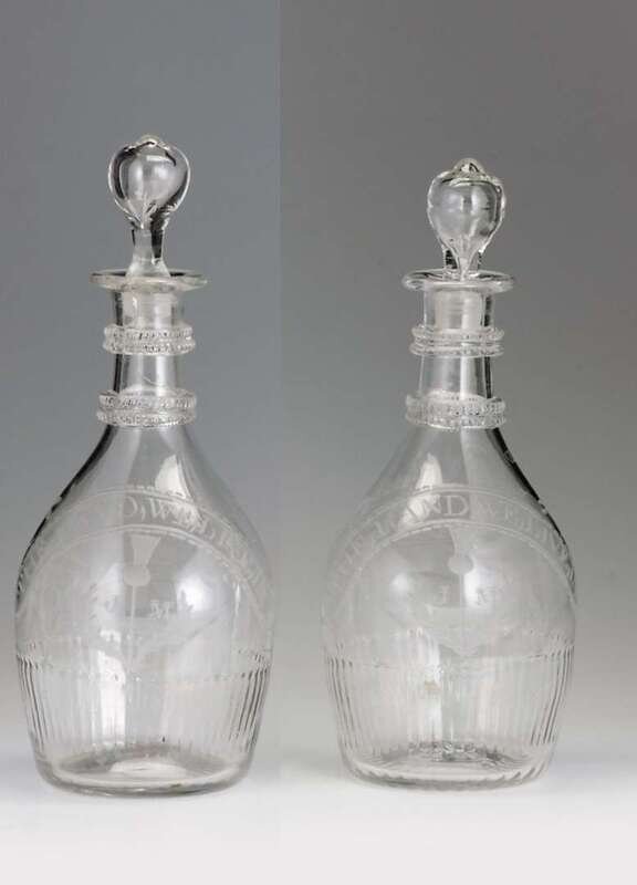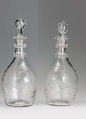 Pair of Irish engraved glass decanters late 18th century