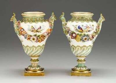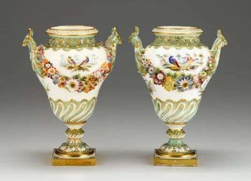 Pair of English porcelain floral encrusted urns mid 19th century