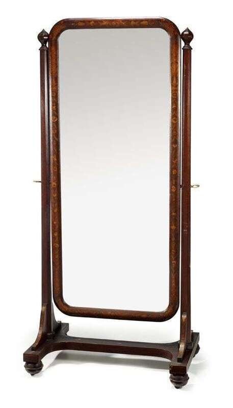 Mahogany and boxwood marquetry cheval mirror