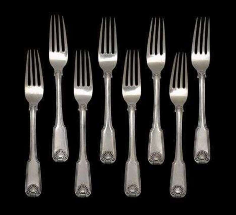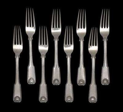 Set of eight Chinese Export 'Kings' pattern silver dinner forks cutshing, canton, second quarter 19th century