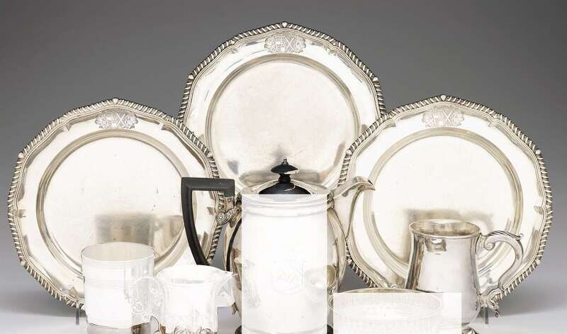 Each of shaped circular form with gadrooned rims and a heraldic crest. (3).