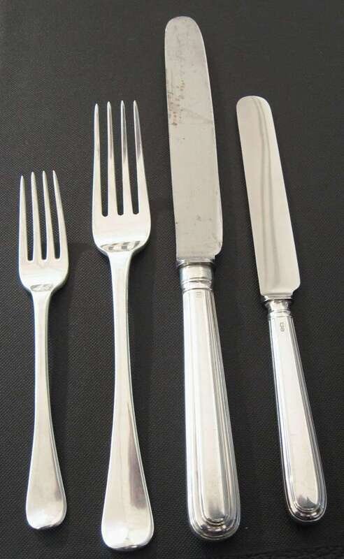 Comprising 12 assorted dinner forks; 12 assorted luncheon forks; 12 dinner knives with steel blades marked JCTC; and 12 luncheon knives with steel blades marked Henry Atkin, Sheffield, 1847 (36).