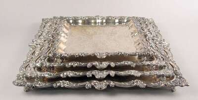 Each of squared form with foliate cast borders and a chased ground. (4).