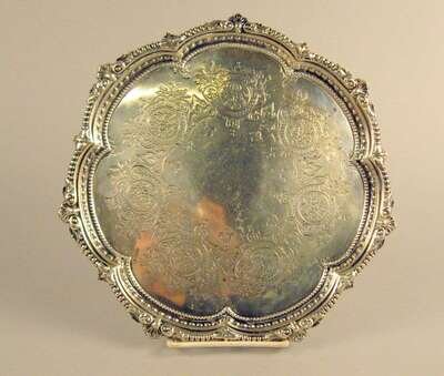 Victorian sterling silver salver martin, hall & co., sheffield, 1864