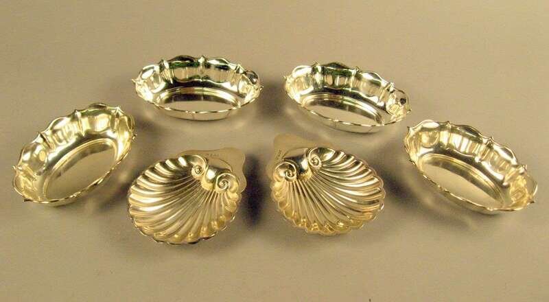 Comprising a set of four bon bon dishes by A & J Zimmerman Ltd, Birmingham, 1910 and 1913 and two shell form bon bon dishes by John & William Deakin, Sheffield, 20th century. (6).