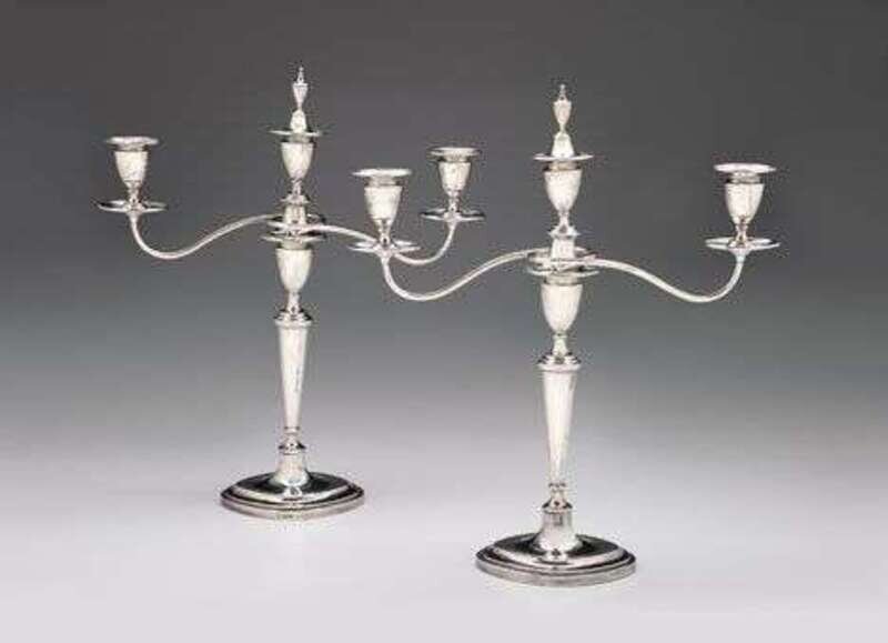 Pair of Edwardian sterling silver three light candelabra thomas a. scott, sheffield, 1910