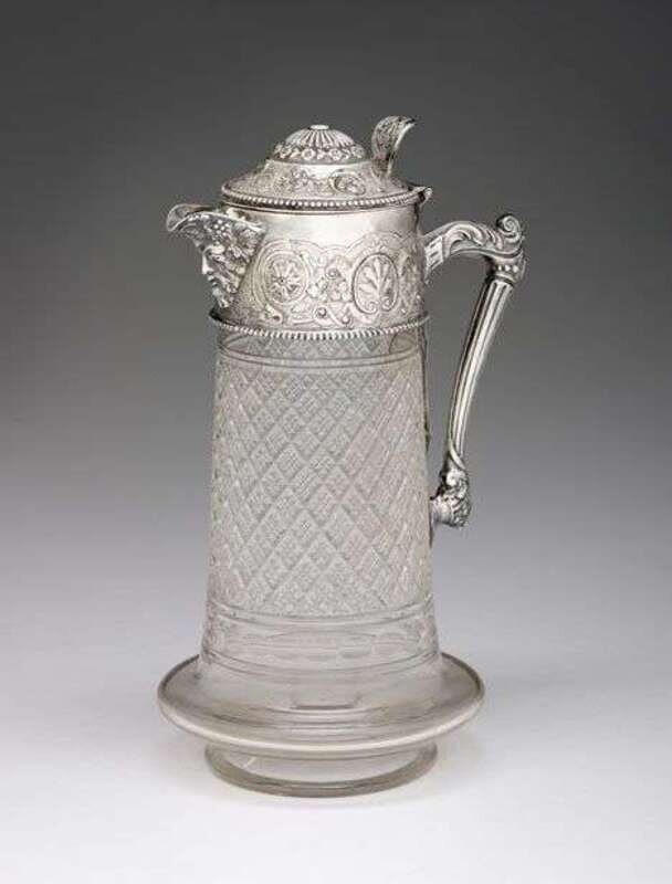 Victorian sterling silver mounted cut glass claret jug william & george sissons, sheffield, 1850