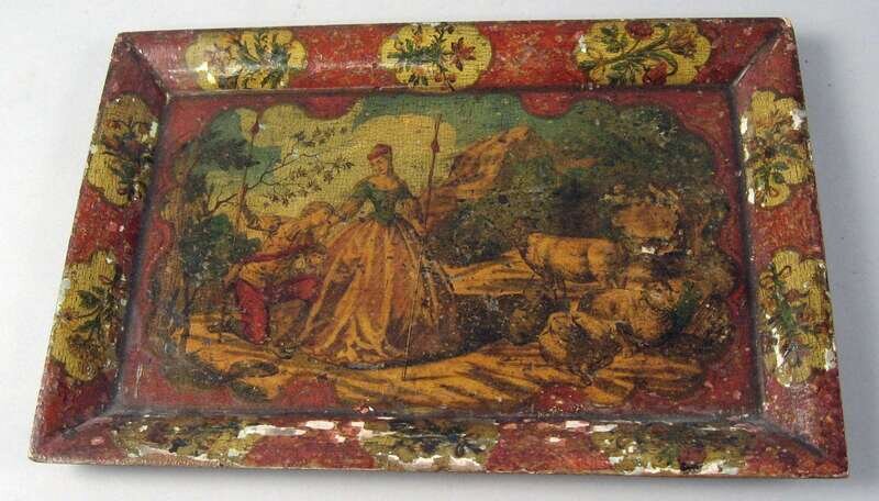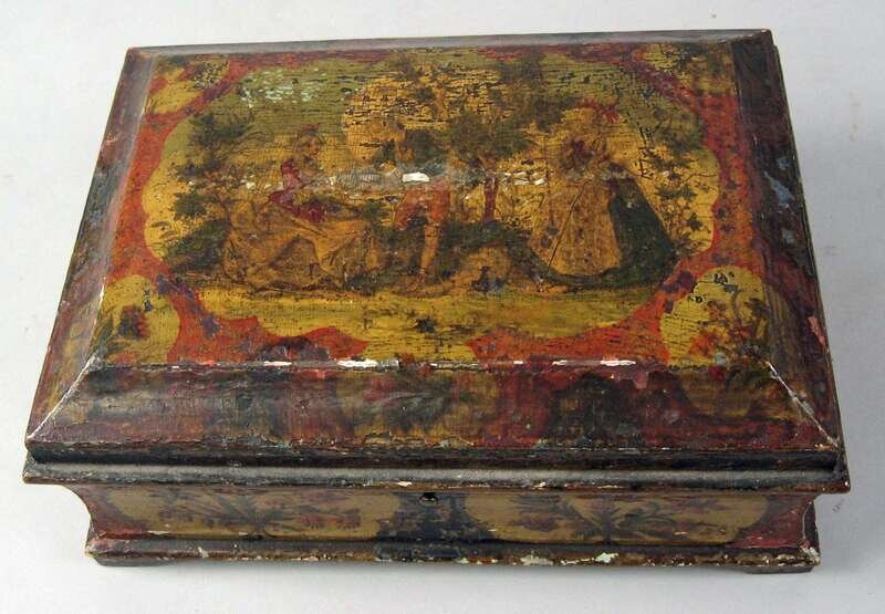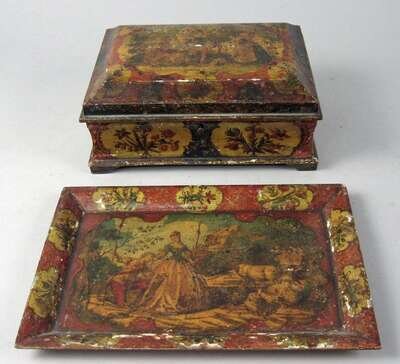 Venetian painted box and tray 19th century
