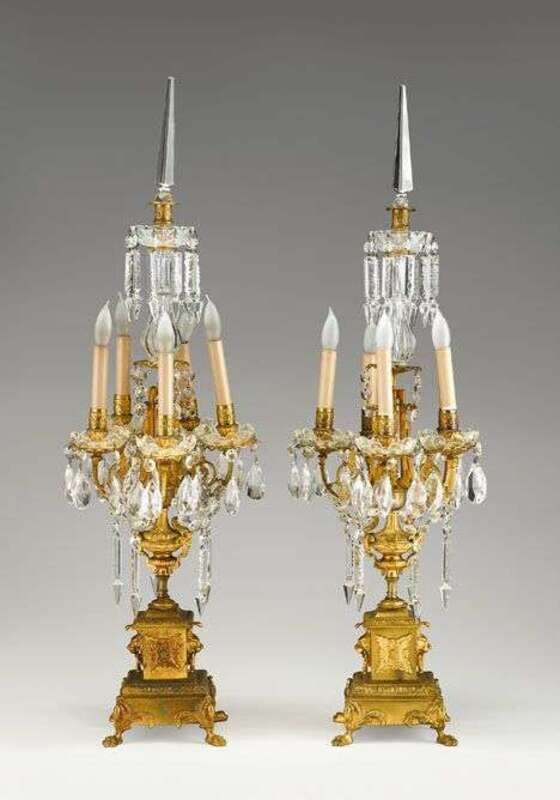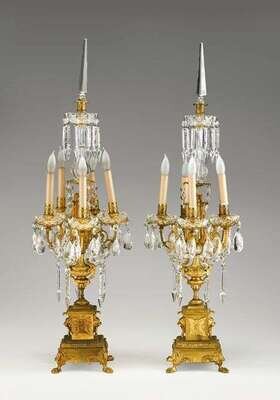Pair of Louis XV style gilt bronze and glass candelabra