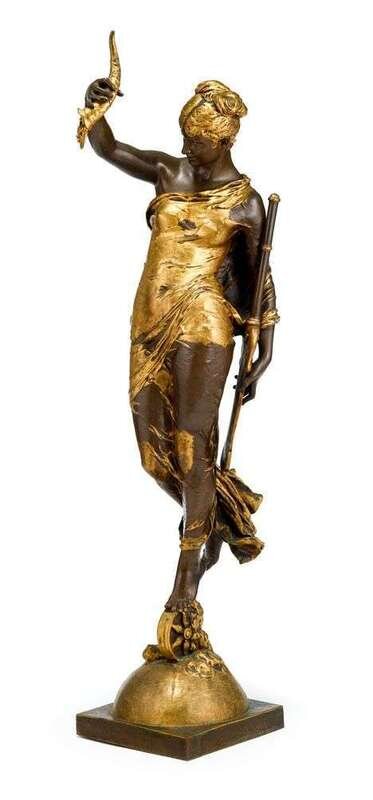 Bronze, gilt and light brown patina, inscribed 'Moreau Vauthier / 1878' with F. Barbedienne foundry mark and 'RÉDUCTION MÉCANIQUE A.COLLAS BREVETÉ'.