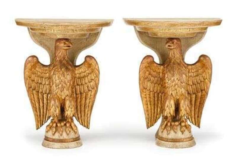 The stepped demilune top surmounting a gilt eagle perched on a domed base. (2).