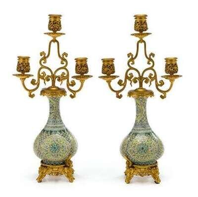 Pair of French gilt bronze mounted Chinese porcelain famille jaune candelabra 19th century