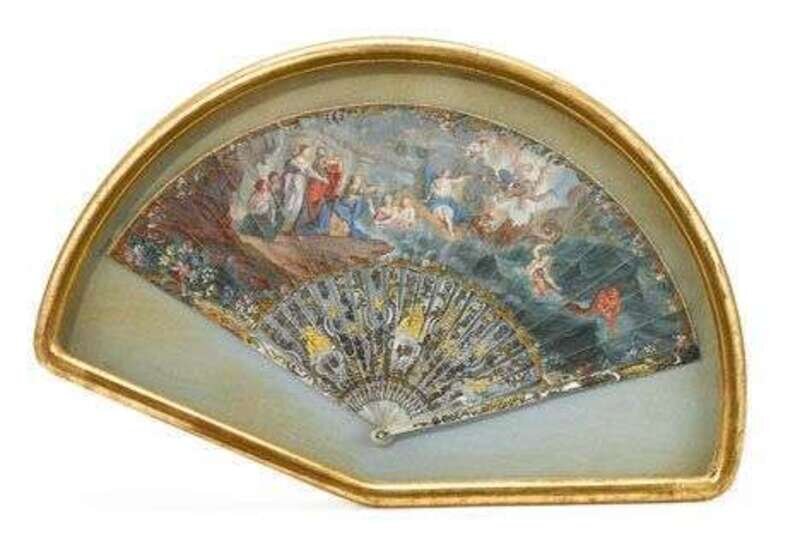 French silvered & gilt mother-of-pearl painted fan late 18th century