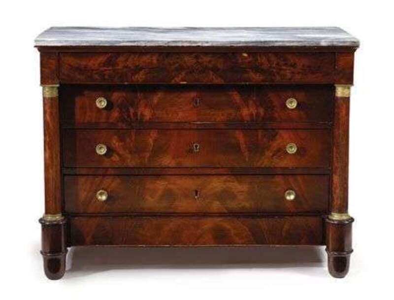 Empire mahogany and brass inlaid commode circa 1800