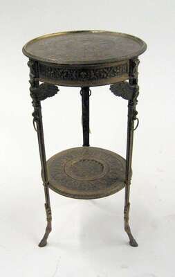 The circular top with Greek key and griffin motif above a foliate scroll frieze centered by a mask raised on tripod legs headed by eagles, ending in hoof feet.