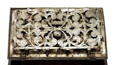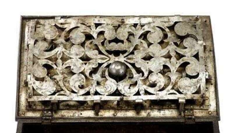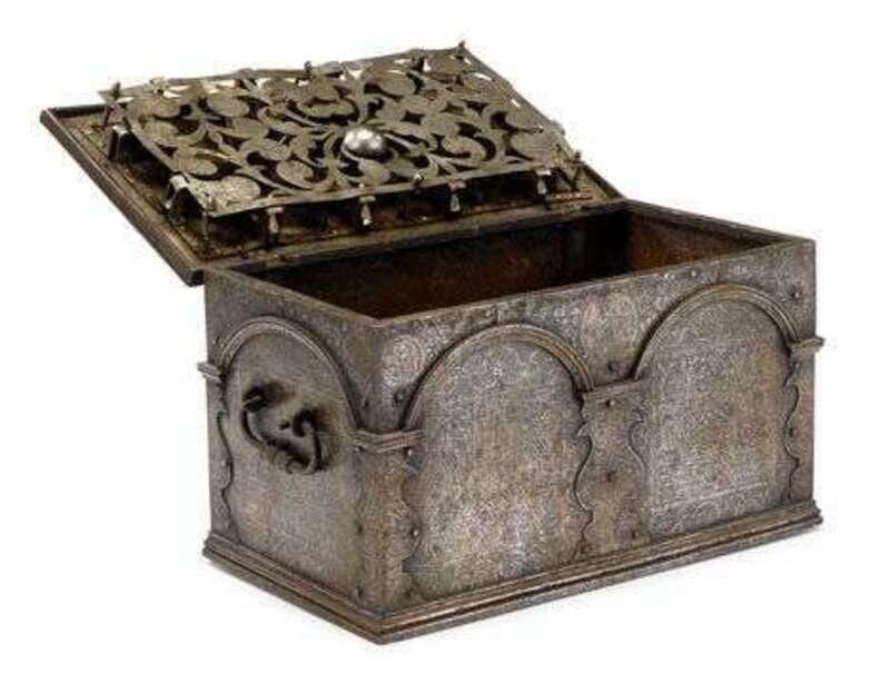 German Baroque engraved steel and wrought iron strongbox 17th century