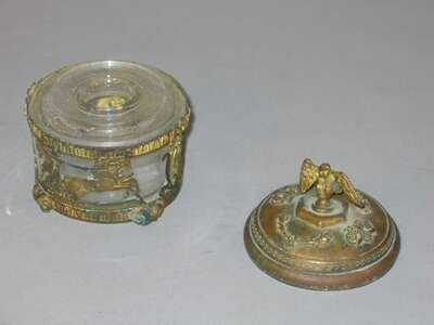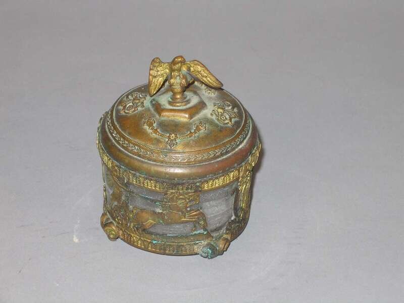 French Empire gilt metal and glass inkwell circa 1810
