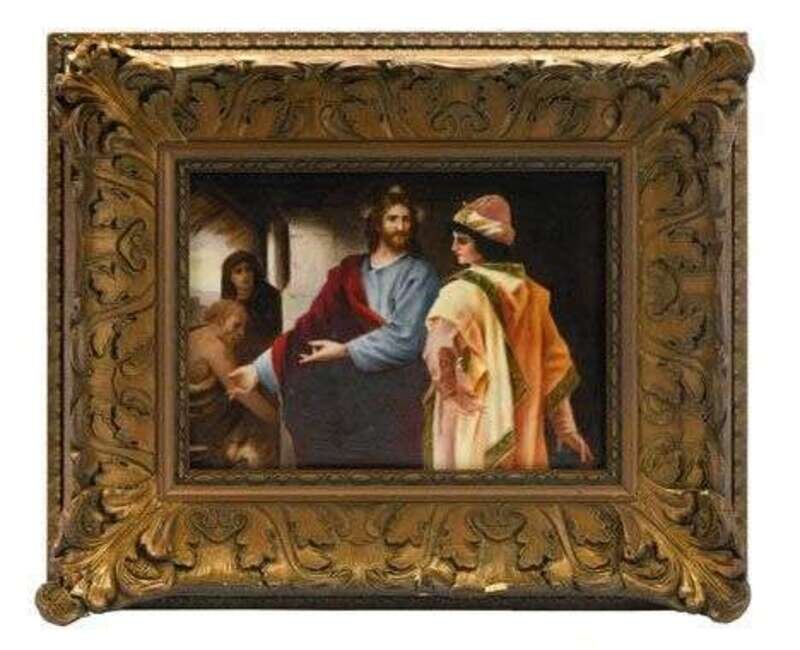 Continental porcelain plaque christ and the rich young ruler, after heinrich hofmann