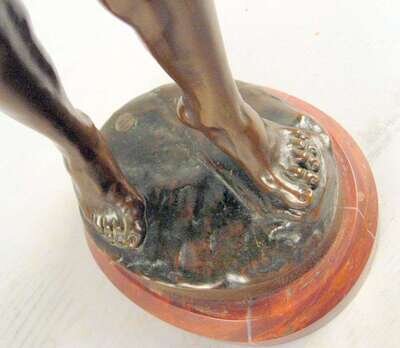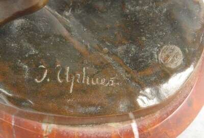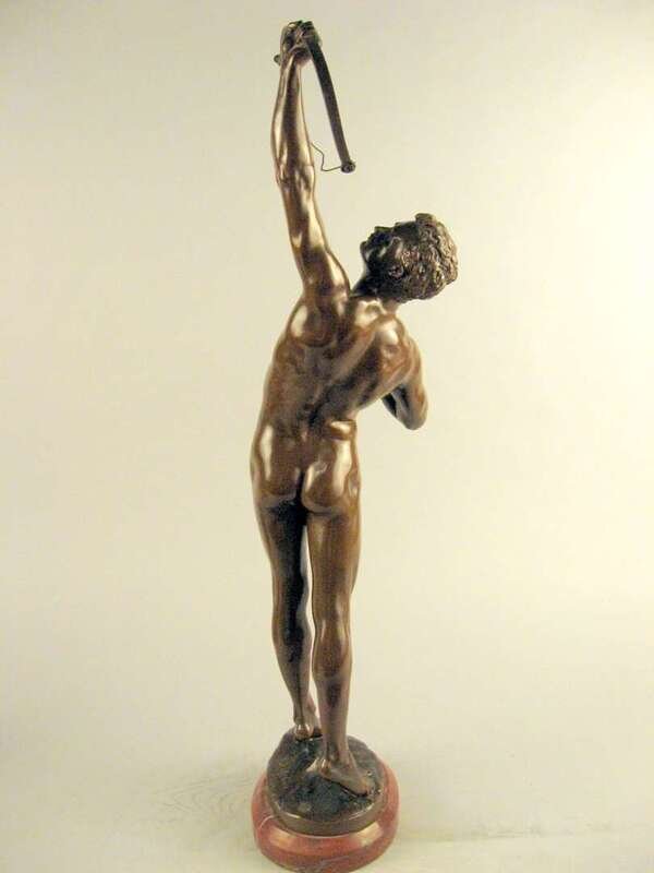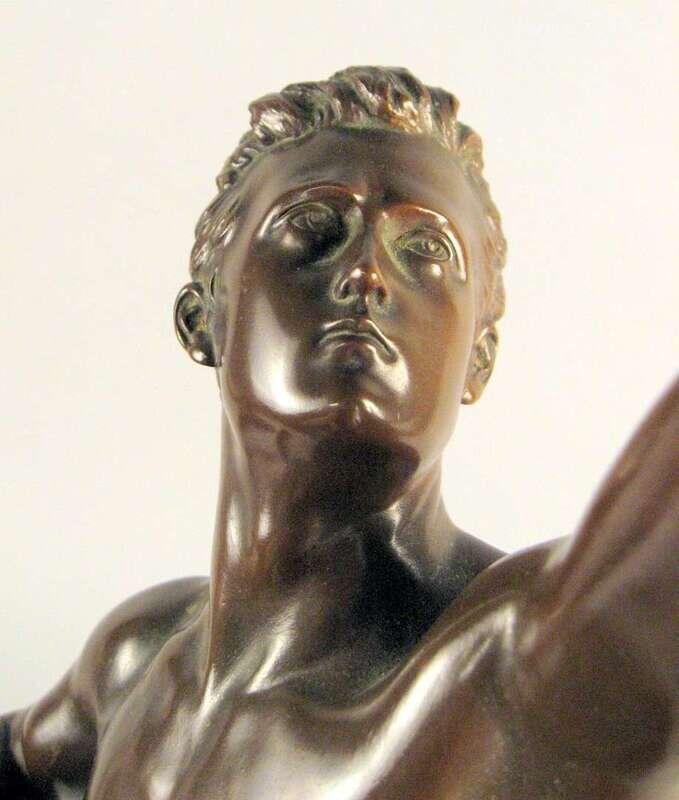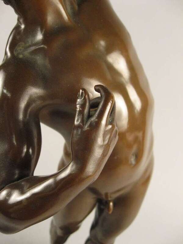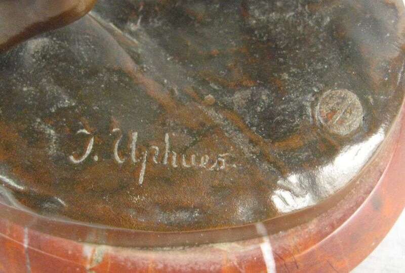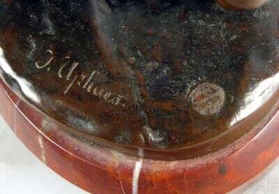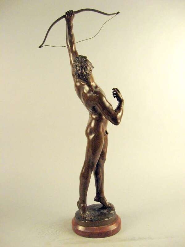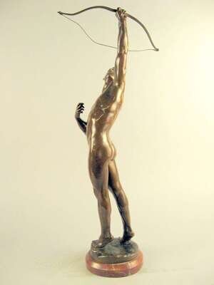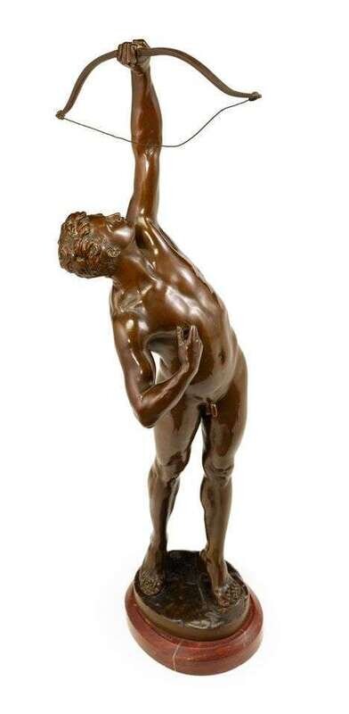 Bronze, modeled as a nude classical figure directing his bow towards the sky, inscribed 'J. Uphues' with foundry mark 'AKTIENGES VORM H. GLADENBECK UND SOHN FRIEDRICHSHAGEN' raised on an oval red marble base.