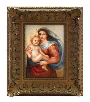 Continental porcelain plaque sistine madonna, after raphael