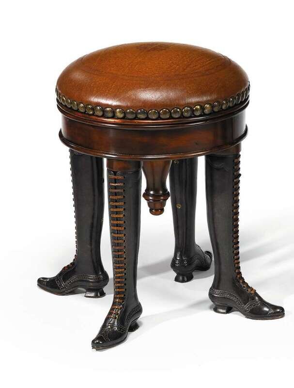 The circular adjustable padded leather upholstered seat supported by four bronze legs in the form of lady's boots.