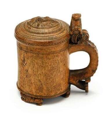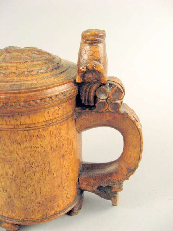 Scandinavian carved burlwood peg tankard 18th/ 19th century