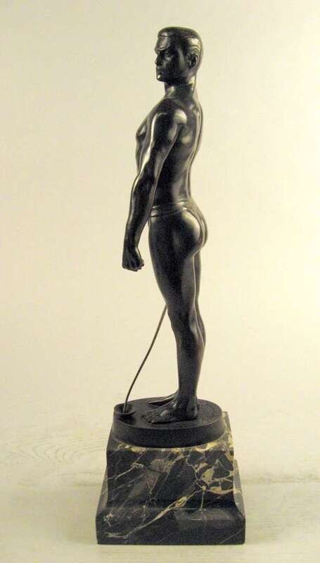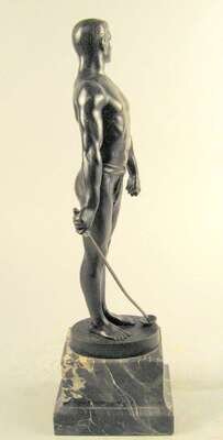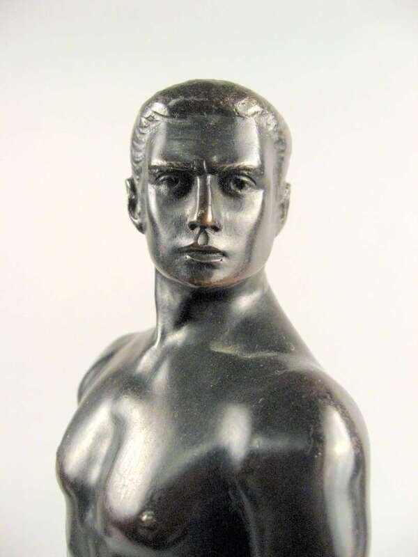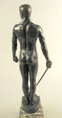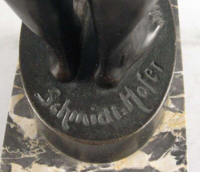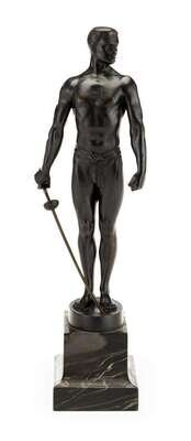 Bronze, dark brown patina, the figure modeled with his sword at his side, inscribed 'Schmidt-Hofer', raised on a stepped rectangular marble base.