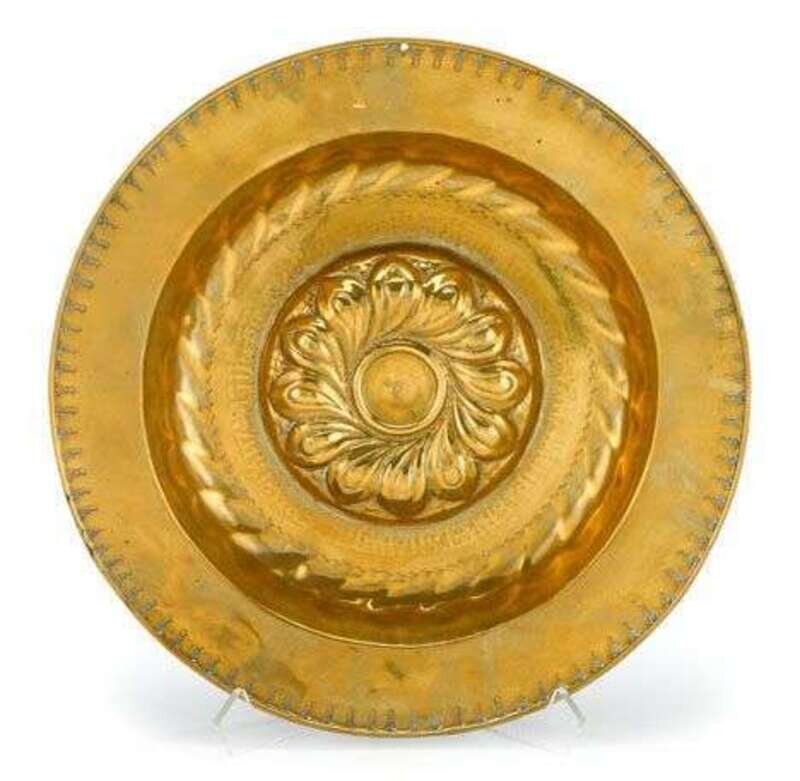 Two German brass alms dishes 16th/ 17th century, probably nuremberg