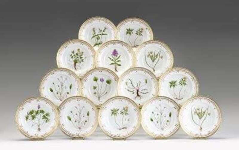 Set of fourteen Royal Copenhagen 'Flora Danica' porcelain soup plates