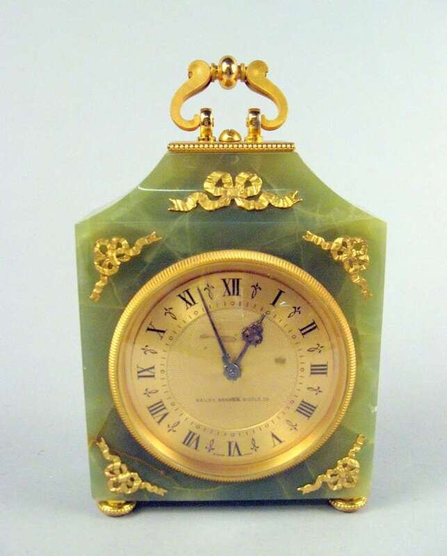 Onyx and gilt bronze mounted desk clock retailed by bailey, banks & biddle