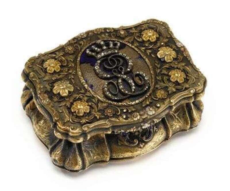 Jeweled gold & enamel royal presentation snuff box carl martin weishaupt & sons, hanau, circa 1850