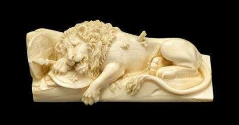 The recumbent figure depicted mortally wounded and lying on a shield, a spear shaft in his side.