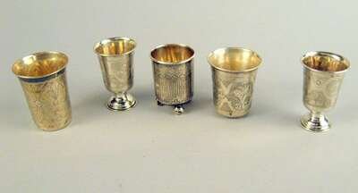 Group of Russian silver vodka cups late 19th century, various makers