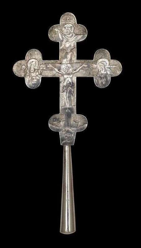Russian silver and niello crucifix moscow, 1852, maker's mark 'a.k.'