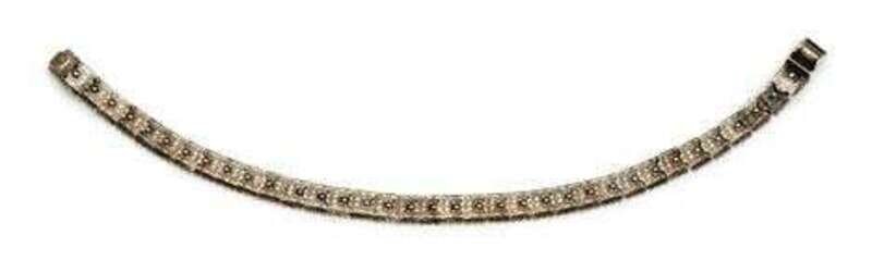 Each link segment with niello foliate motifs and raised silver bead, stamped 84 standard, maker's mark 'AH'.