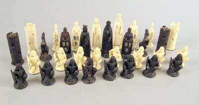 South German carved ivory and limewood chess set late 19th century